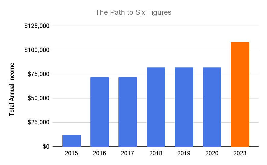 List out your income by year for as long as you've been working in content marketing.