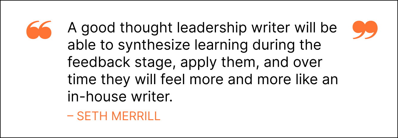 The editing process is similar to that of an in-house marketing team, but there may be more in-depth edits when working with a freelancer, explains Seth Merrill, Content Marketing Manager at Lucid Software, who contributes thought leadership content for the Marketplace.